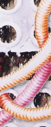 In diesen zunehmend abstrakt werdenden Bildern kontrastieren exakt wiedergegebene Elemente der technischen Welt, die farbige, weiche, verschlungene Verbindungen zulassen.