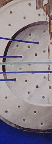 Kabel, Metallplatten, Nägel verlieren ihre Bestimmung in einen ungeklärten Kontext. Regelmäßige Strukturen verwerfen sich, Starres zerbricht, der braun-graue Hintergrund - nicht mehr stufenlos gesprüht - löst sich auf in fleckige Oberfläche. Spuren der Zeit werden erkennbar.