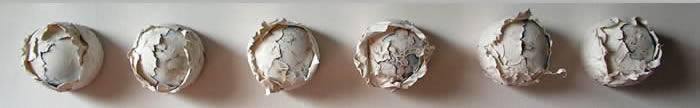 Metamorphose I linen, wrinkled on supporting object, acryl, 6x20x35cm, 2005