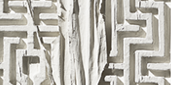 Die Papier-und Leinenobjekte tragen noch die Erinnerung an die Fläche in sich. Würfel, Kugel, Pyramide sind die vorherrschenden Körper dieser Werkreihe.Neben singulär geformten Gebilden erscheinen in diesen Arbeiten auch wieder rhythmisch gesetzte Körperserien. Aufgehoben wird die geometrische Stringenz durch eine Oberflächengestaltung, die organische Strukturen sichtbar macht. Gerissene Papiere und unregelmäßig geschnittenes Leinen lassen an Blätter denken, geben den Blick frei auf fein farbige verbundene Zellnetze. Runde Formen durchbrechen mit vegetativer Kraft den Hintergrund und scheinen herauszuwachsen. Auch hier verbindet die Künstlerin eng das Malerische mit dem Plastischen.